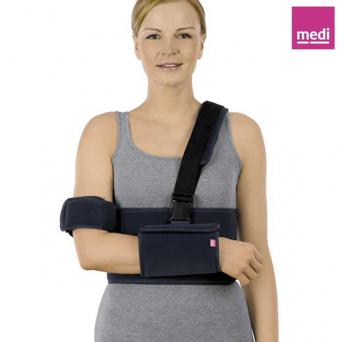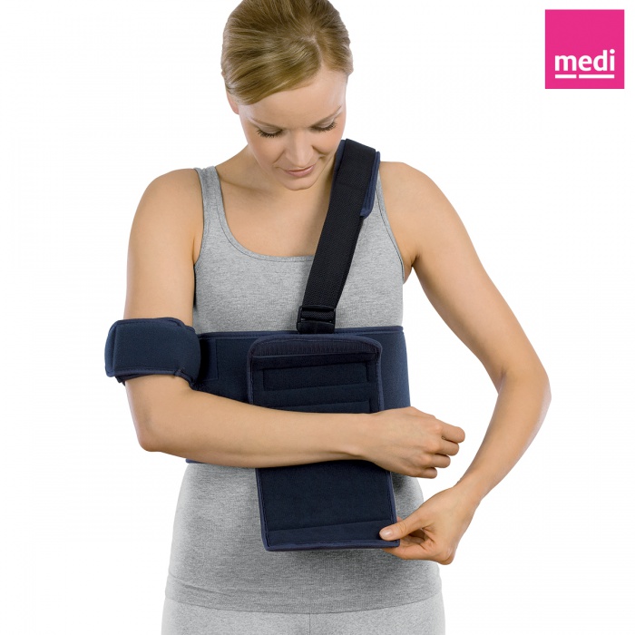 Bandáž ramene z prodyšného materiálu s účinnou fixací paže.