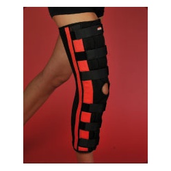 Ortéza kolenní rigidní ve flexi 20° má dvě stranové plastové dlahy a jednu dorzální duralovou. Výrobek je celotextilní, vnitřní část z měkké bavlny a vnější ze 100% polyester. Zapínání na suchý zip.