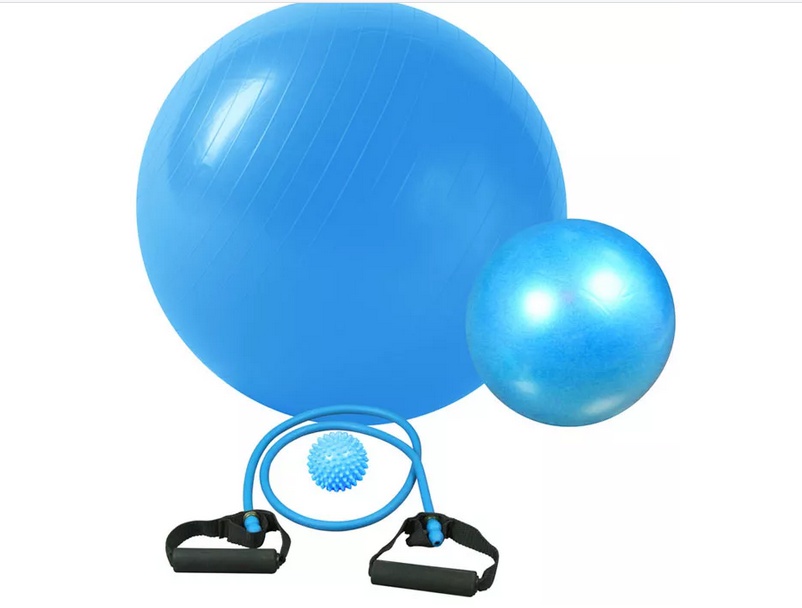 Fitness rehabilitační sada pro cvičení žen obsahuje pomůcky pro běžné cvičení, protahování a lehké posilování.