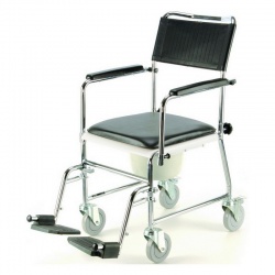 Praktická pojízdná toaletní židle jak do domácnosti, tak do soc. zařízeních.