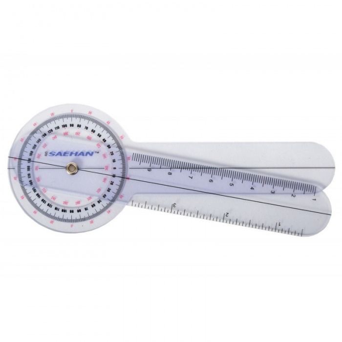 Čirý goniometr plastový má 15 cm čárovou stupnici. Průsvitný plast umožňuje sledovat osu pohybů kloubů a rozsah jejich pohybu.
