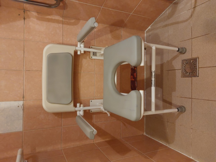 Sklopná sedačka do sprchy k přivrtání na stěnu. Duralový sklopný rám, podpůrné nastavitelné nohy,